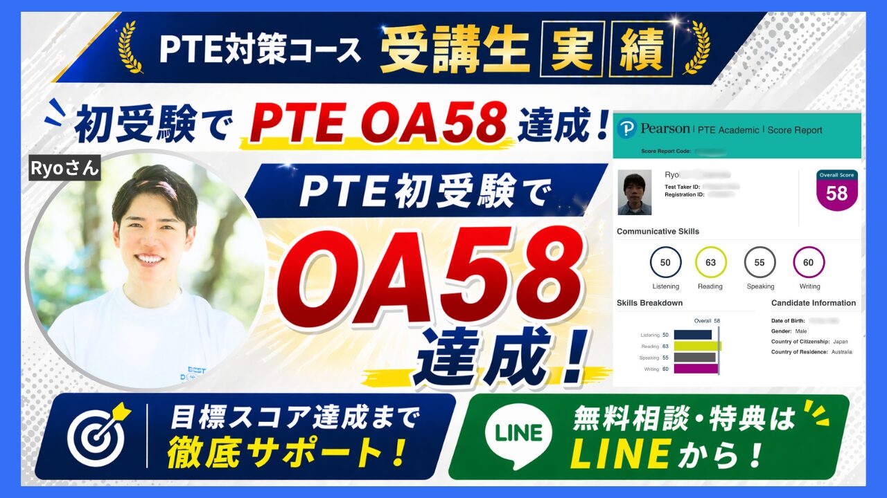 【PTE体験談】私がPTE OA58点を達成した方法!| Ryoさん